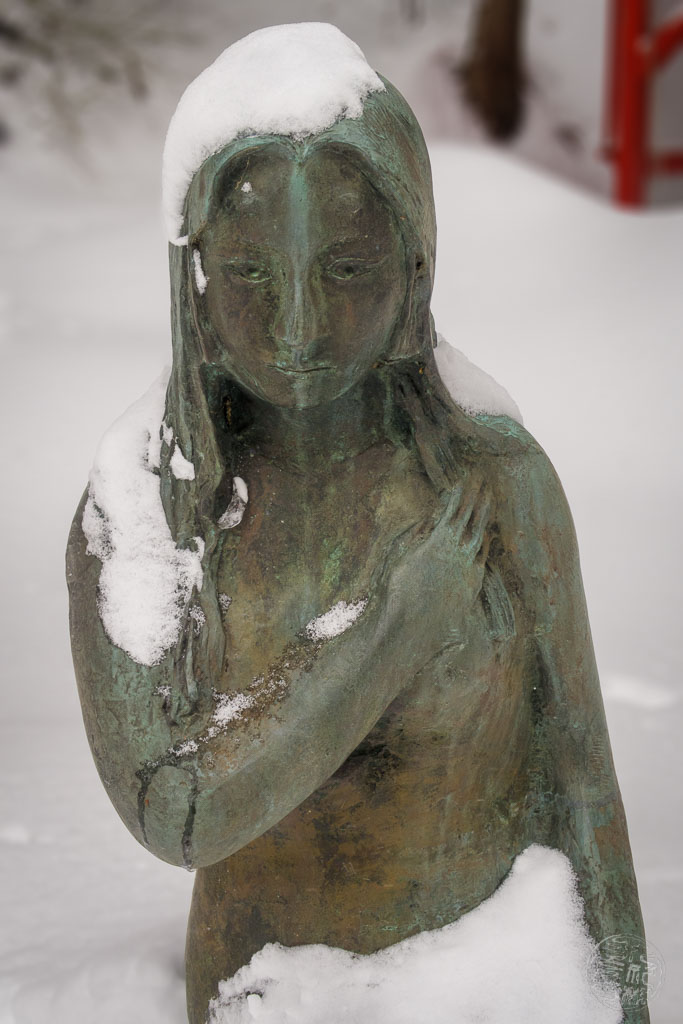 Erschrocken über ihren Verlust der Menschlichkeit wandte sie sich ab, und aus ihrer tiefen Trauer floßen Tränen in unendlicher Fülle. Sie sanken in die Erde und formten die große Senke, in der sich das Wasser sammelte und zum Tazawa-See wurde. Als der See entstanden war und ihre Tränen versiegten, suchte sie Zuflucht in seinen Tiefen. Dort begegnete sie Hachirōtarō, dem Drachenprinzen des benachbarten Hachirōgata-Sees. Er erkannte den Schmerz in ihr, aber auch die Kraft und Schönheit ihres neuen Wesens. Mit Geduld und Zuneigung zeigte er ihr, dass ihre Verwandlung kein Fluch, sondern ein Übergang zu einer anderen Form der Existenz war, die nicht an die Vergänglichkeit der Menschenwelt gebunden war. Aus der anfänglichen Trauer erwuchs eine stille Verbindung zwischen ihnen, die sich allmählich zu einer tiefen Liebe entwickelte.