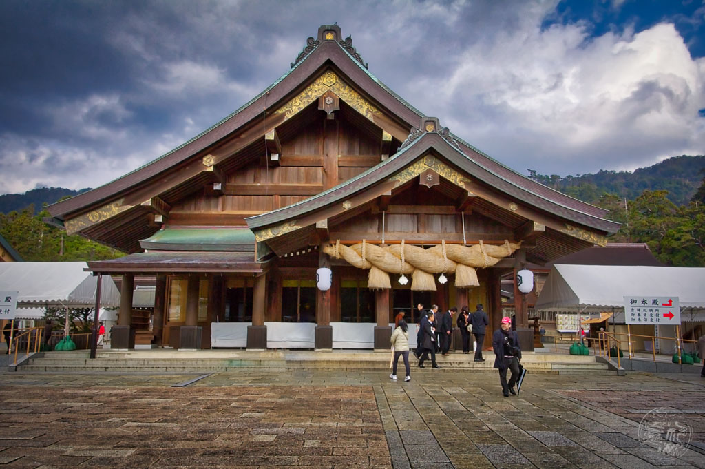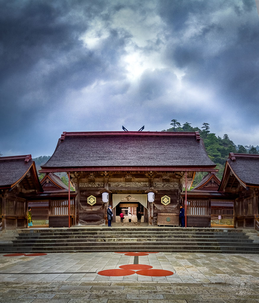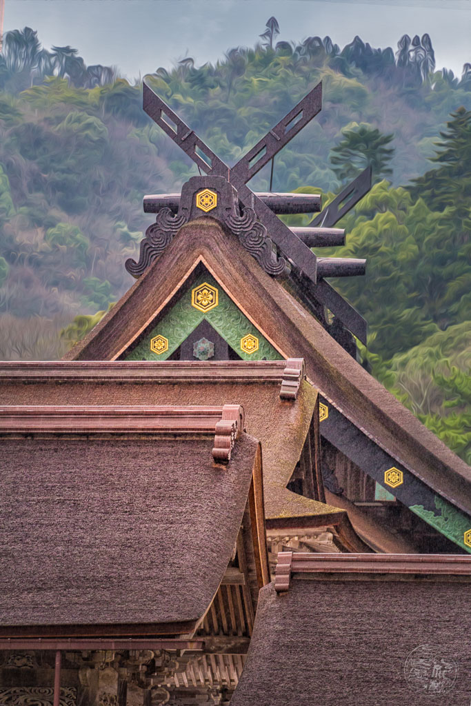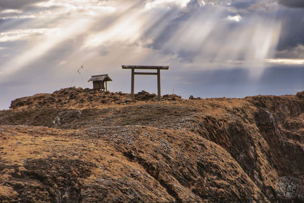 Kisakahi-hime nahm den Bogen an sich. Zur Geburt eines göttlichen Kindes gehörte ein uraltes Ritual: Sie musste einen Pfeil schießen, um dem Neugeborenen symbolisch einen Weg in die Welt zu öffnen. Dieses Motiv — die Öffnung eines Weges durch göttliche Handlung — findet sich oft in den Mythen des Izumo-Gebiets, wo viele Geschichten von der Entstehung von Landschaftsformen durch Kami erzählen.
