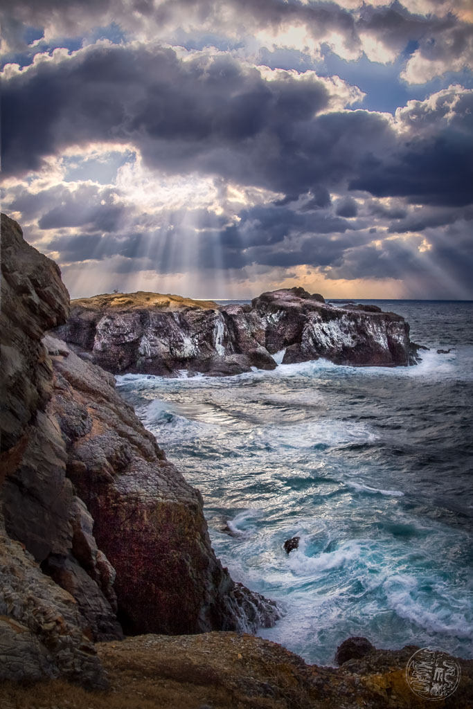 In diese Grotte floh Kisakahi-hime, die schöne und starke Göttin der Küsten, deren Name bis heute in alten lokalen Ritualen auftaucht. Ihr Leib war schwer, denn sie trug ein Kind in sich, dessen Geburt seit Wochen bevorzustehen schien. Trotzdem war niemand darauf vorbereitet, dass der Moment ausgerechnet heute kommen sollte. Der Himmel verdunkelte sich, ein fernes Grollen legte sich wie ein Vorzeichen über das Meer, und mit dem Auffrischen des Windes wurde Kisakahi-hime klar, dass die Stunde gekommen war. Hier, an diesem uralten Ort, an dem nach der Vorstellung der Menschen die Welt der Götter besonders nahe war.