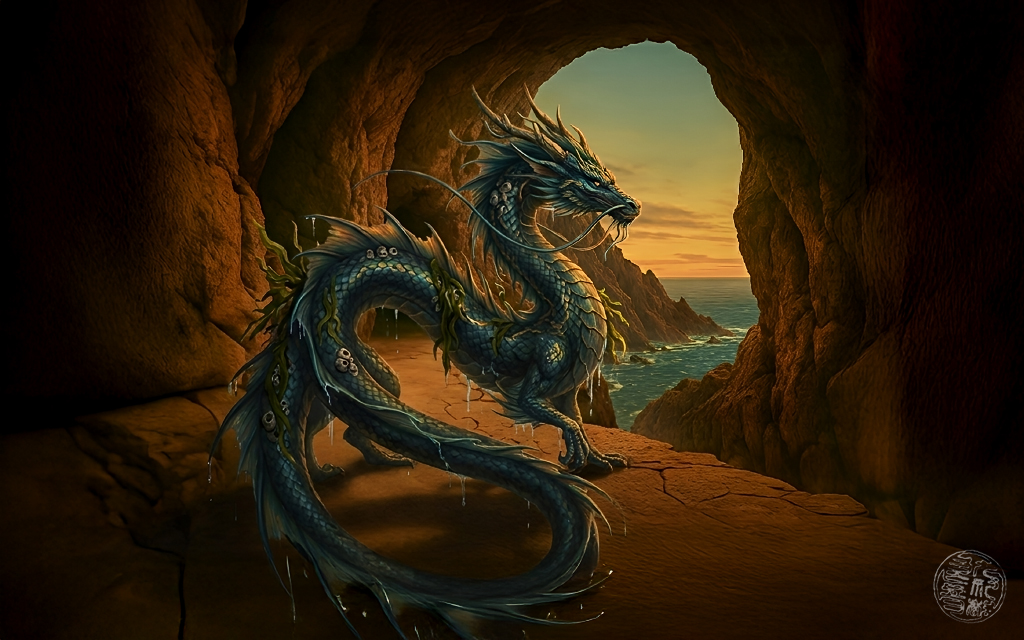 Die Höhle von Udo lag hoch über dem Meer, verborgen im Fels, dort, wo Land und Wasser sich berühren. Unter ihr schlugen die Wellen gegen den Stein, doch in der Grotte selbst herrschte eine eigentümliche Stille, als hielte die Welt den Atem an. Hier hatte Toyotama-hime, Tochter des Meeresgottes Watatsumi, ihr Kind geboren.