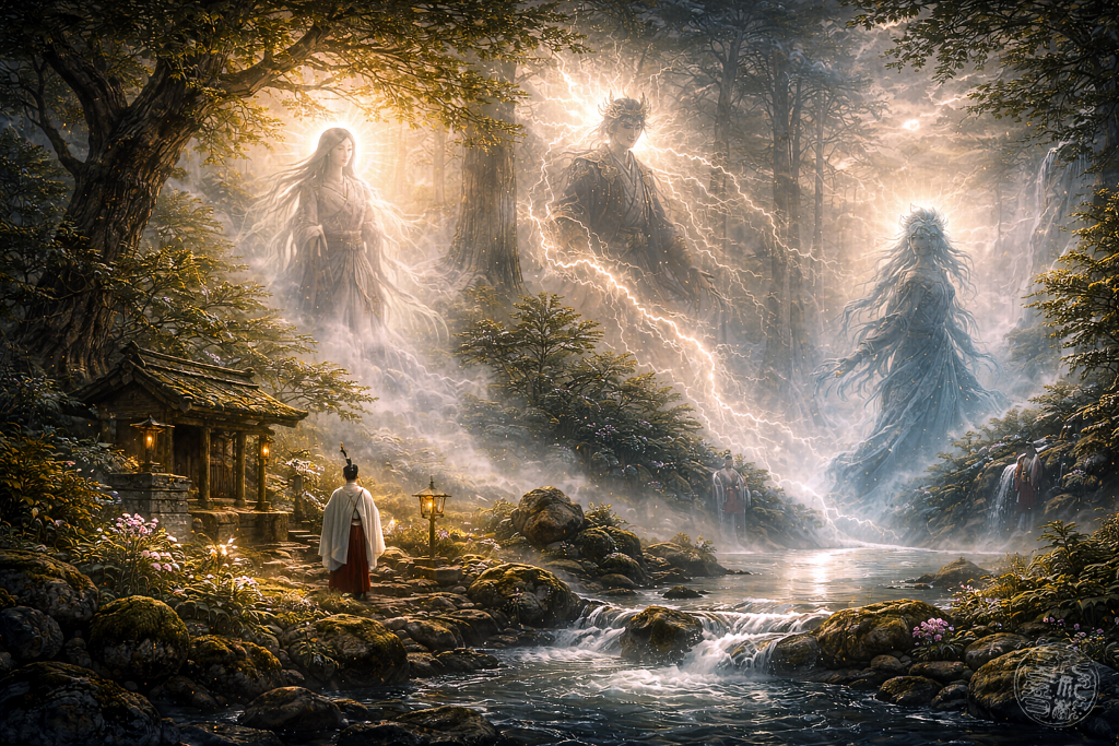 In Japan begegnet man dem Begriff „Kami“ überall – in Tempeln, in Geschichten, in der Natur und sogar im Alltag. Wörtlich lässt sich Kami oft mit „Gott“ oder „Gottheit“ übersetzen, doch diese Übersetzung greift zu kurz. Kami sind keine allmächtigen Götter im westlichen Sinn, sondern spirituelle Wesen oder Kräfte, die in allem Außergewöhnlichen wohnen können: in der Natur, in Menschen, in Ahnen oder in besonderen Ereignissen.