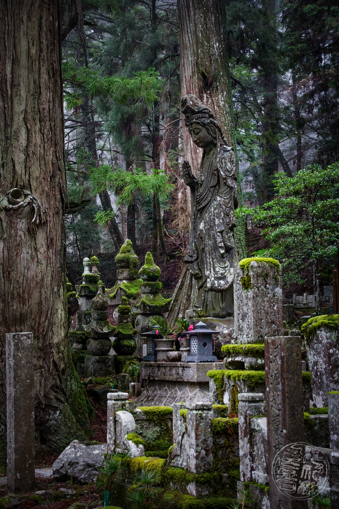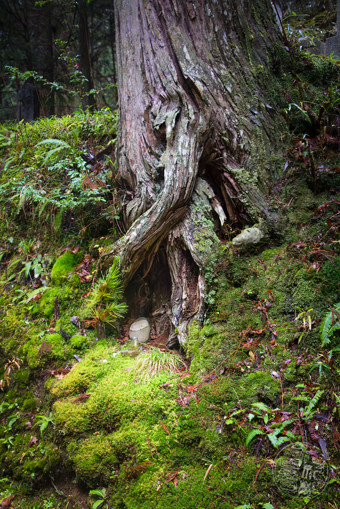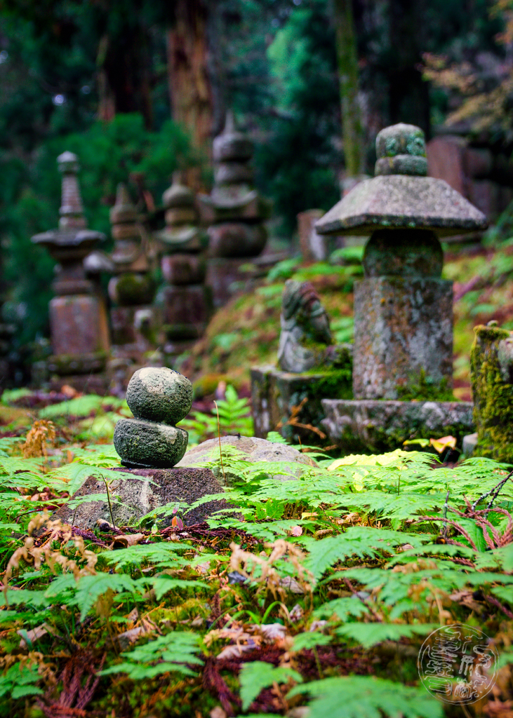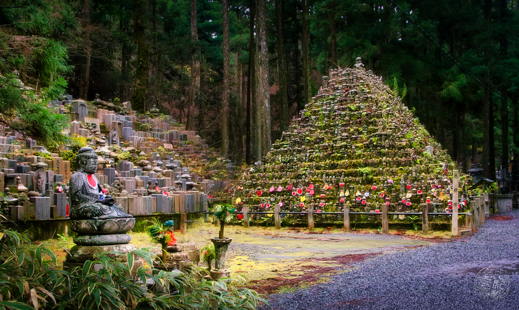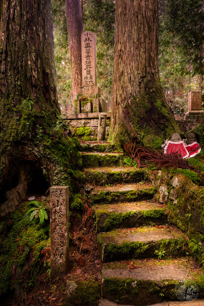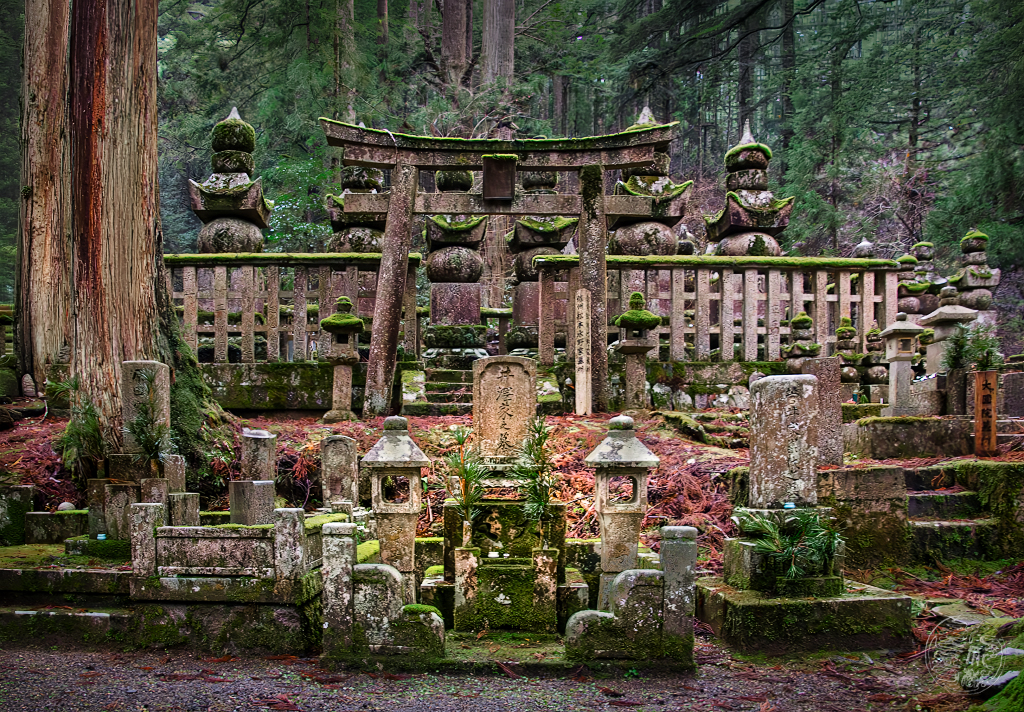 Am Morgen folgte Taro einem schmalen, kaum sichtbaren Pfad tief in den Wald. Der Nebel war so dicht, dass er die Hand vor Augen kaum sehen konnte. Schließlich stand er vor dem Mausoleum von Kūkai. Der Stein war alt, verwittert, mit Moos bedeckt, doch eine unheimliche Präsenz durchdrang den Ort.