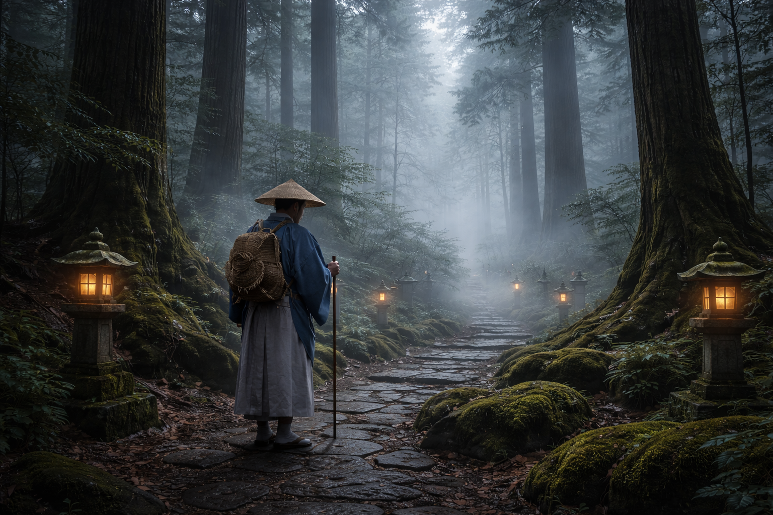 Auf dem heiligen Berg Koya-san führen Nebel, uralte Zedern und schweigende Tempel durch fünf geheimnisvolle Begegnungen: eine Nebelgestalt am Ichinohashi-Tor, flüsternde Wälder, ein wandernder Samurai, nächtliche Mönchsgesänge und leuchtende Geisterlichter. Jede Geschichte verbindet Stille, Ehrfurcht und das Unsichtbare zu einer atmosphärischen Reise zwischen Diesseits und Jenseits.
