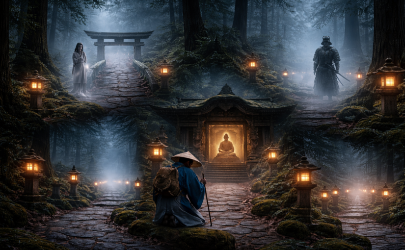 Auf dem heiligen Berg Koya-san führen Nebel, uralte Zedern und schweigende Tempel durch fünf geheimnisvolle Begegnungen: eine Nebelgestalt am Ichinohashi-Tor, flüsternde Wälder, ein wandernder Samurai, nächtliche Mönchsgesänge und leuchtende Geisterlichter. Jede Geschichte verbindet Stille, Ehrfurcht und das Unsichtbare zu einer atmosphärischen Reise zwischen Diesseits und Jenseits.