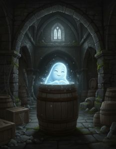 Wie gesagt, Egon lebt schon 600 Jahre. Er war nie wie die anderen Gespenster, er fand es blöd, jede Nacht spuken zu müssen. Er schlief lieber die ganze Nacht in seinem Bierfass, das ganz unten im Kellergewölbe stand, wo es immer dunkel und unheimlich war.